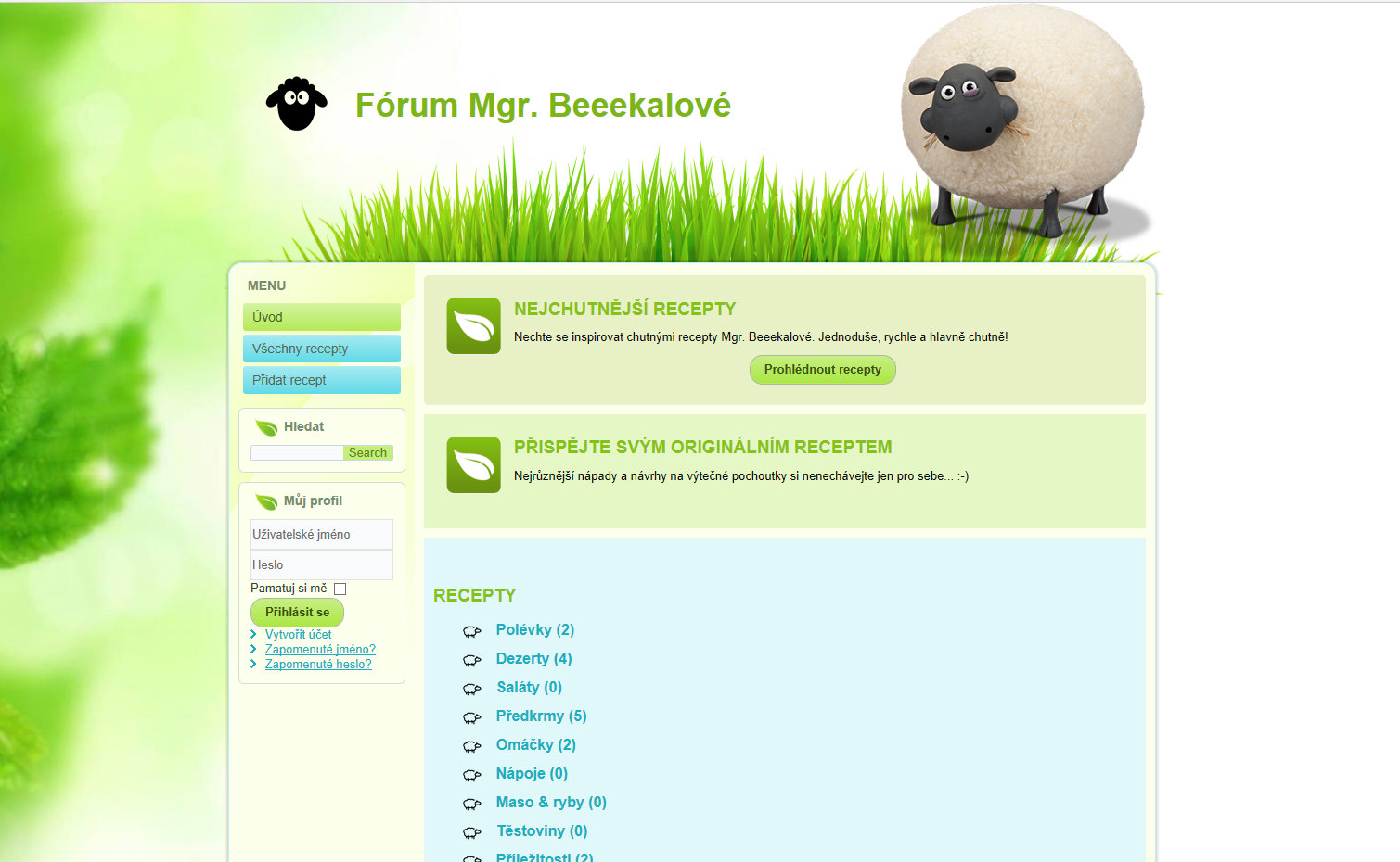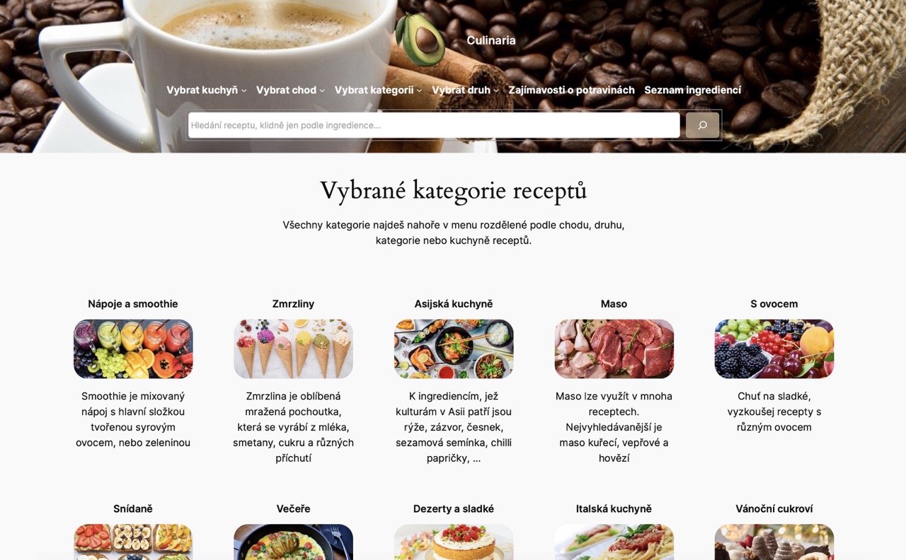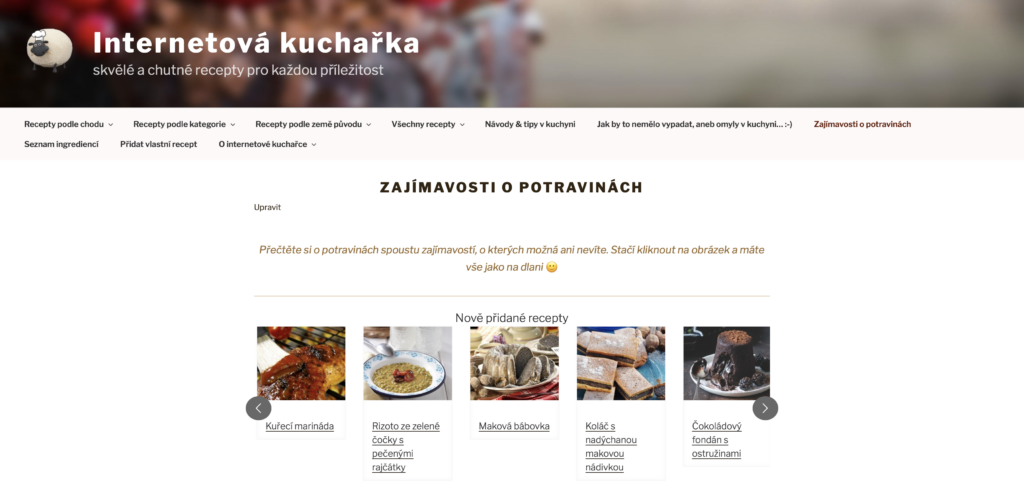 - Internetová kuchařka – databáze receptů s možností filtrování a vkládání vlastních receptů.