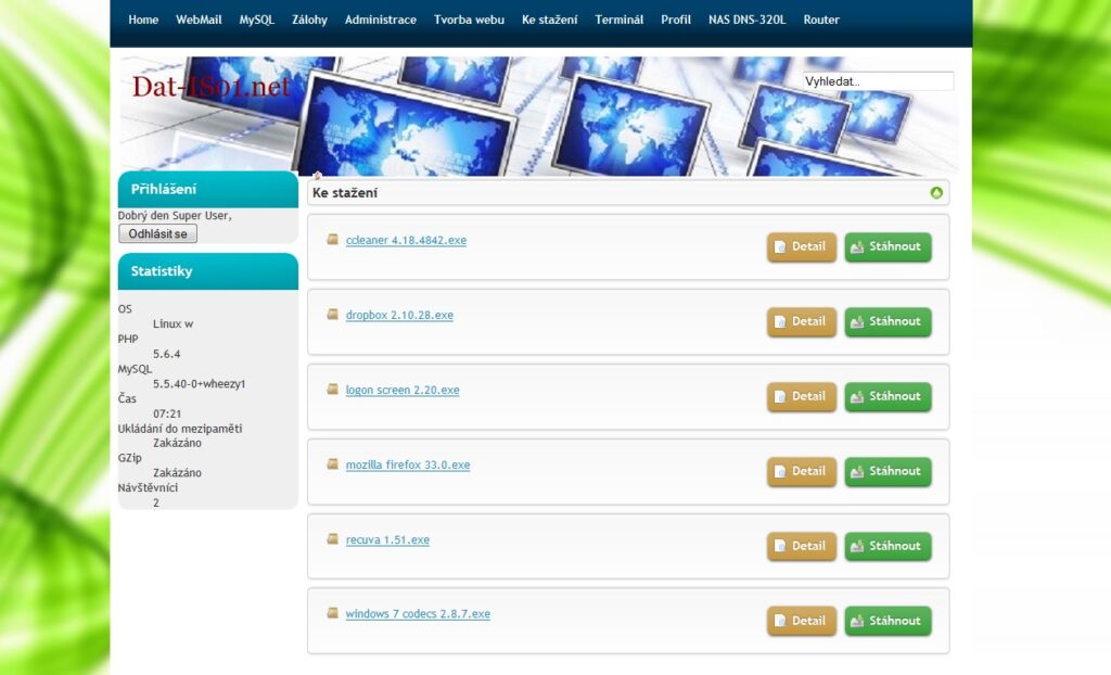 - Abra Flexi – webové rozhraní pro ekonomický systém provozovaný na VPS serveru.