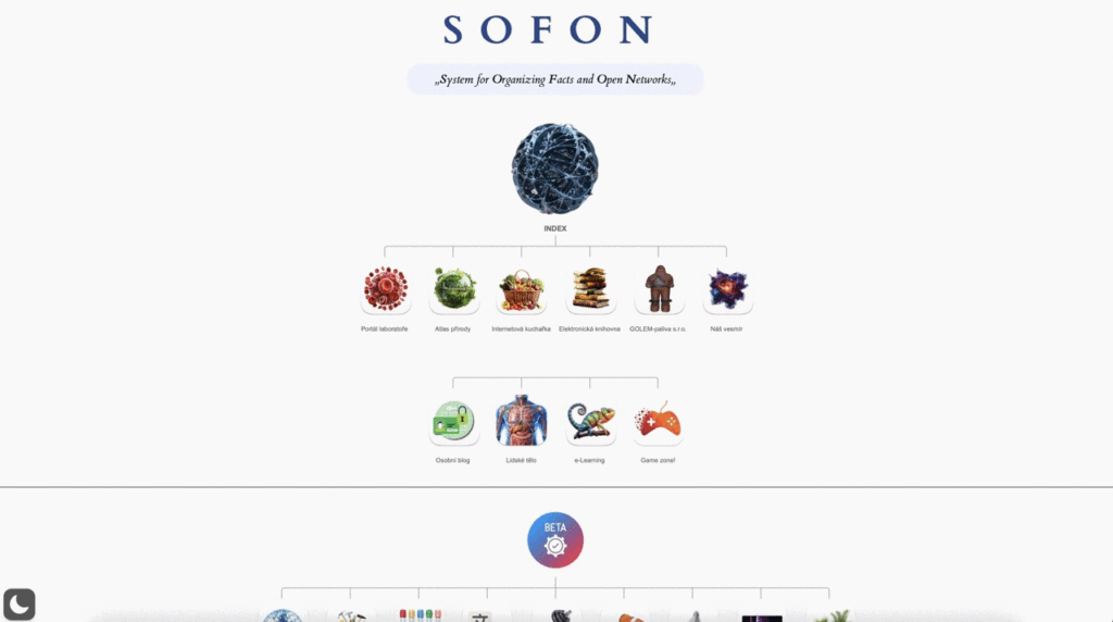 SOFON je můj dlouhodobý osobní projekt zaměřený na tvorbu tematicky zaměřených webových aplikací a online nástrojů. Jedná se o propojený ekosystém webových stránek, které slouží jak k vlastnímu využití, tak i pro veřejnost nebo vnitrofiremní potřeby.