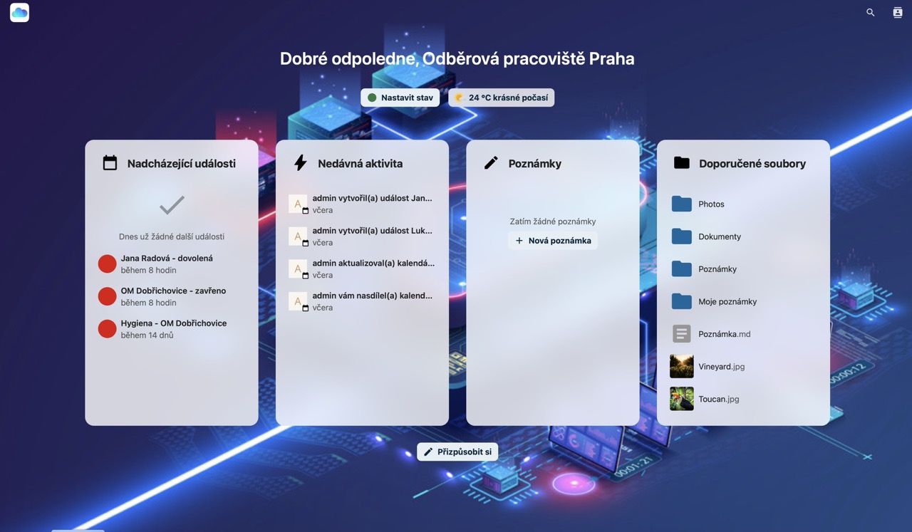 - Mail – e-mailové rozhraní na vlastní doméně.